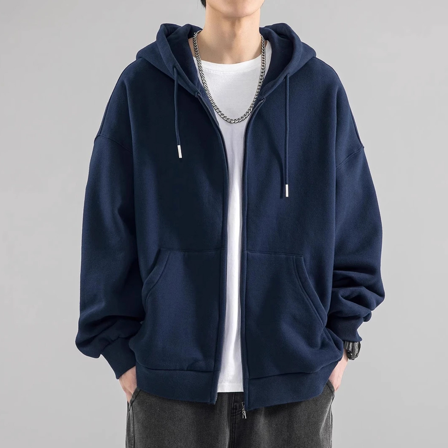 Premium soft zip‑up hoodie with smooth zipper and relaxed fit. Warm, versatile and perfect for layering or transitional weather. A must‑have basic for daily wardrobe.